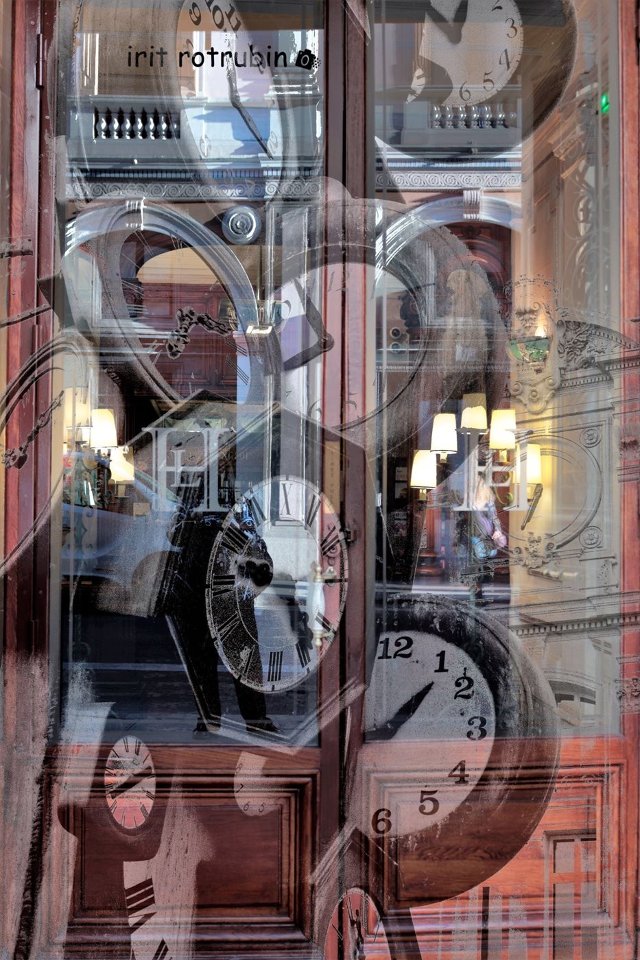 קולאז' שעונים עם דלת מלון 00-0065